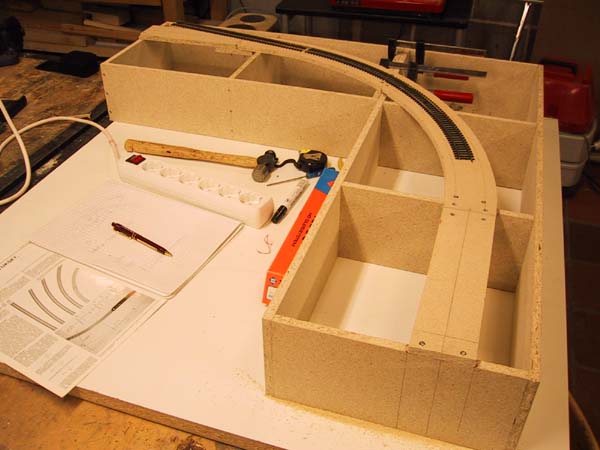 VM-93-radassa oli alunperin neljä kulmamoduulia: kaksi 600 x 600 mm (R472 mm) ja kaksi 900 x 900 mm (R529 mm).Tiukemmat kulmapalat oli romutettava, koska niistä ei kaikki kalusto kulkenut lainkaan tai kulussa oli suuria ongelmia. Jotta uudet kulmamoduulit olisivat helpompia kuljettaa ne tehtiin lohkorakenteisiksi lohkot liitettiin toisiinsa messinkitapein ja ruuvi-siipimutteri-yhdistelmin. Uusissa kulmamoduuleissa on palakiskokaarre keskellä, ja päissä fleksistä tehdyt siirtymäkaaret. Näin saumakohdassa kiskonpäät pysyivät paremmin kohdallaan kun lohkosauma tehtiin palakiskoraiteeseen.