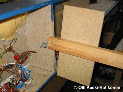 KiinnitysreiätRungon pitkille sivuille porataan 8 mm reikiä jalkojen, taustalevyjen yms. kiinnittämiseksi. Reikiä porataan kaksi allekkain, ylemmät 50 mm kiskon yläpinnasta ja alemmat 125 mm kiskon yläpinnasta (7,5 cm edellisten alapuolelle). Reikiä porataan pitkille sivuille 15 cm päädystä 30 cm jaolla. Näin saumakohdan yli mentäessä on reikiä tässäkin kohdassa noin 30 cm jaolla! JalatJalat kiinnitetään radan kylkien sisäpuolelle, pitkille sivuille tehtyihin reikiin M6 X 50 mm pulteilla ja siipimuttereilla. Pultit kannattaa pujottaa sisäpuolelta, jotta taustakulissien ja verhojen asentaminen sujuu kätevästi. Korialuslevyjä ei pidä unohtaa!